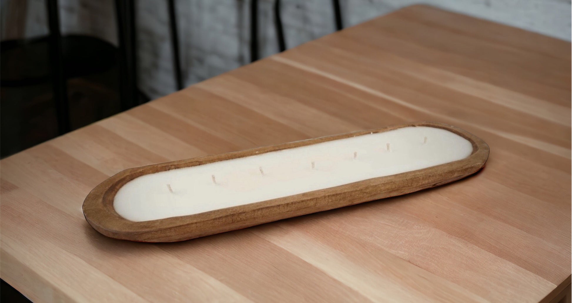 These beautiful 7 wick baguette dough bowl candles bring a touch of warmth and rustic charm to any space. These are hand carved and are designed to evoke a cozy ambiance, let their gentle glow light up your moments with a dash of French countryside elegance.
