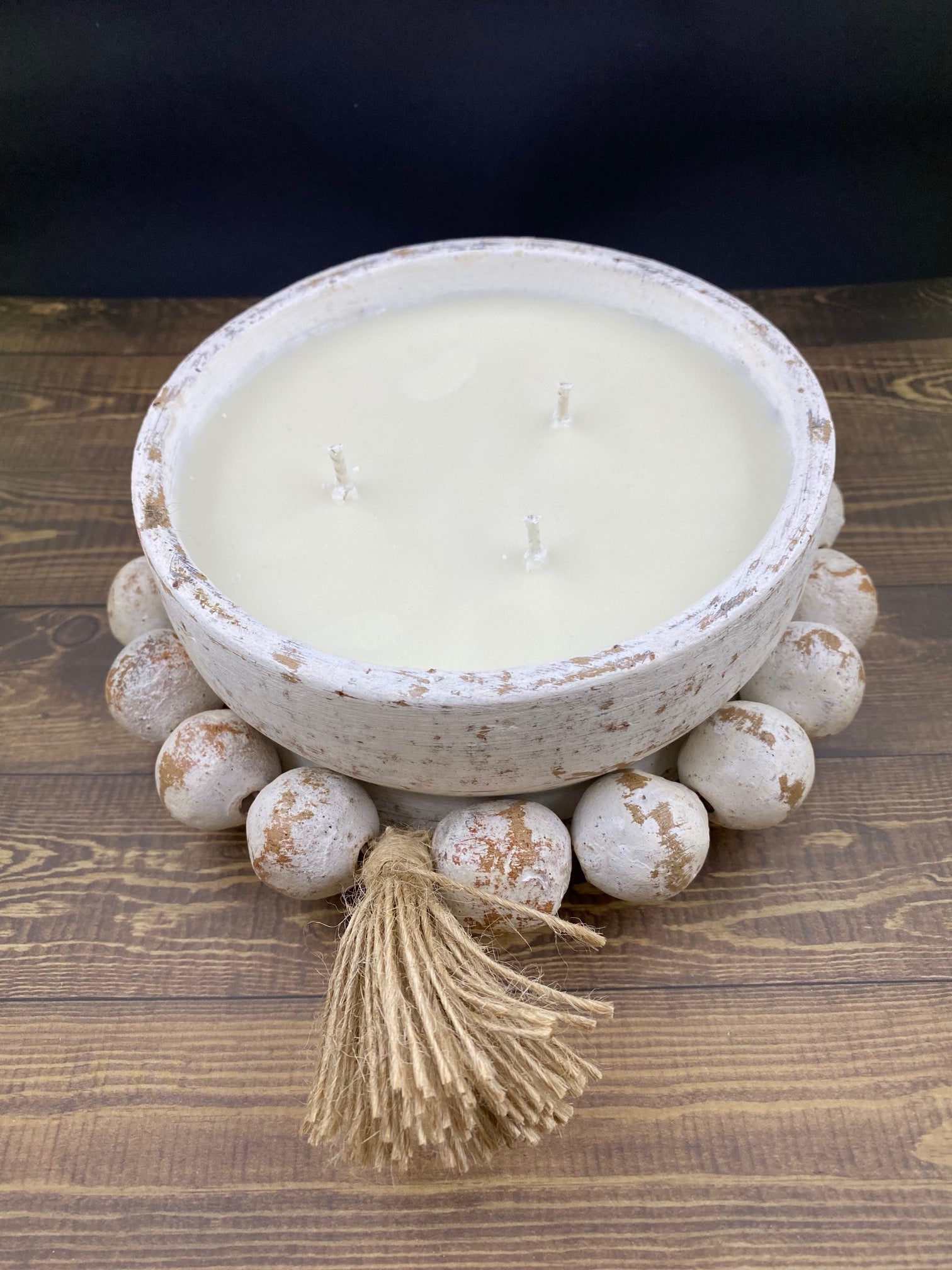 These clay bowls are elegantly simple. They resist heat very very well. It measures about 7 inches wide and about 3 inches in height. This handmade clay vessel holds about 16 fluid ounces of liquid.